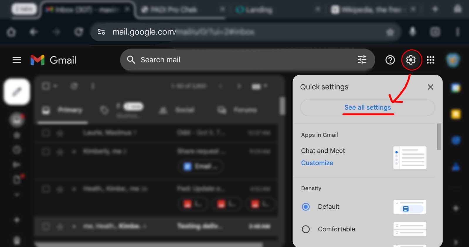 Now that we are all on the same page (apologies for any iPhone users if these steps haven’t worked for you), this next step is as easy as hitting the gear icon in the upper right. This will open a side panel and at the top you will click on “See All Settings”.