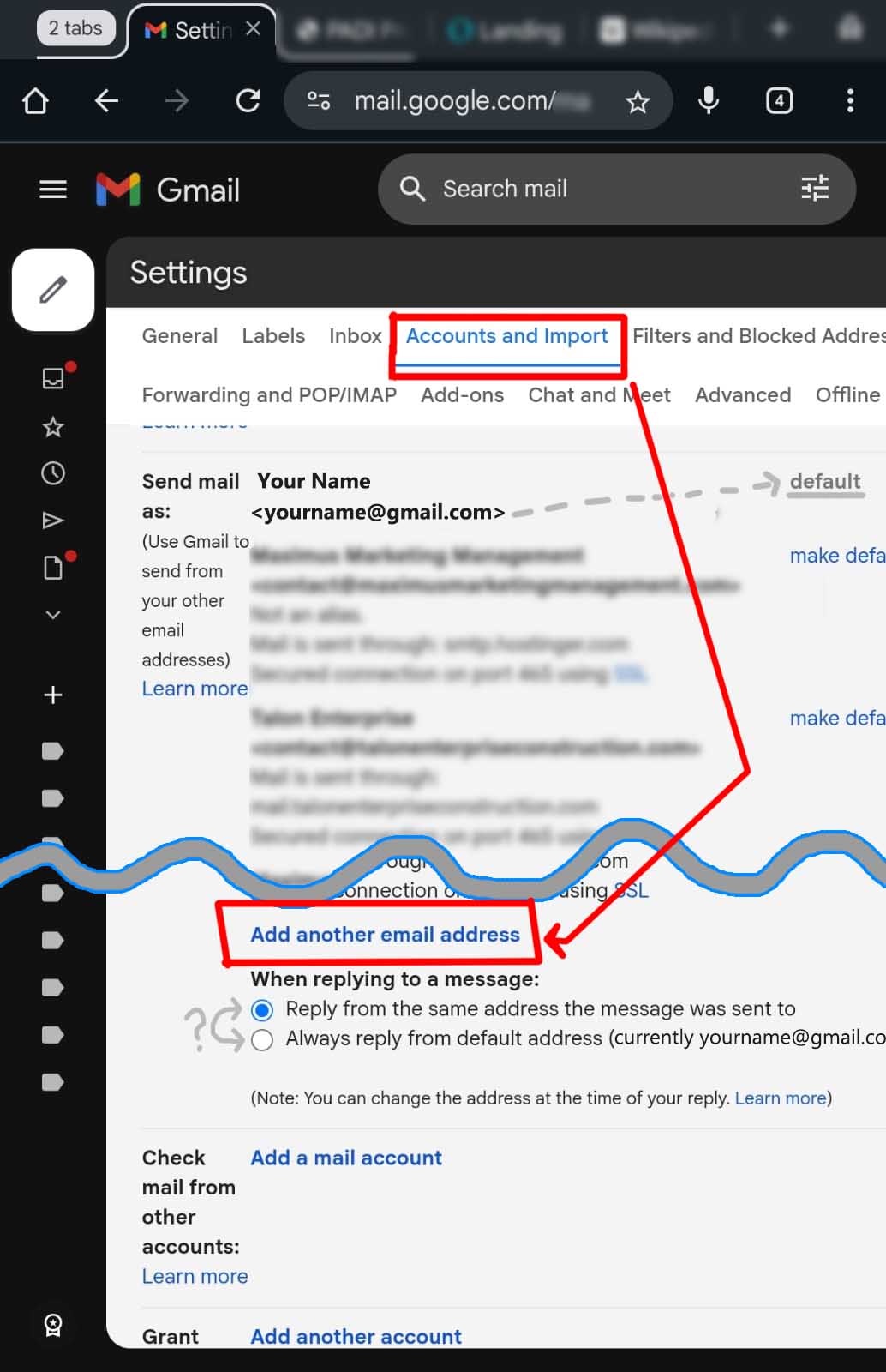 At the top of the “All Settings” page, you will see different tabs such as General, Labels, Inbox, and Accounts and Import. Tap on Accounts and Import.