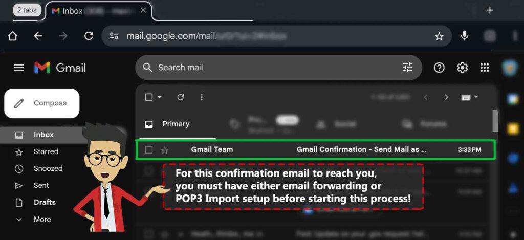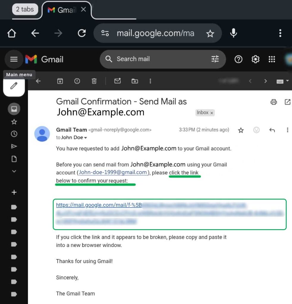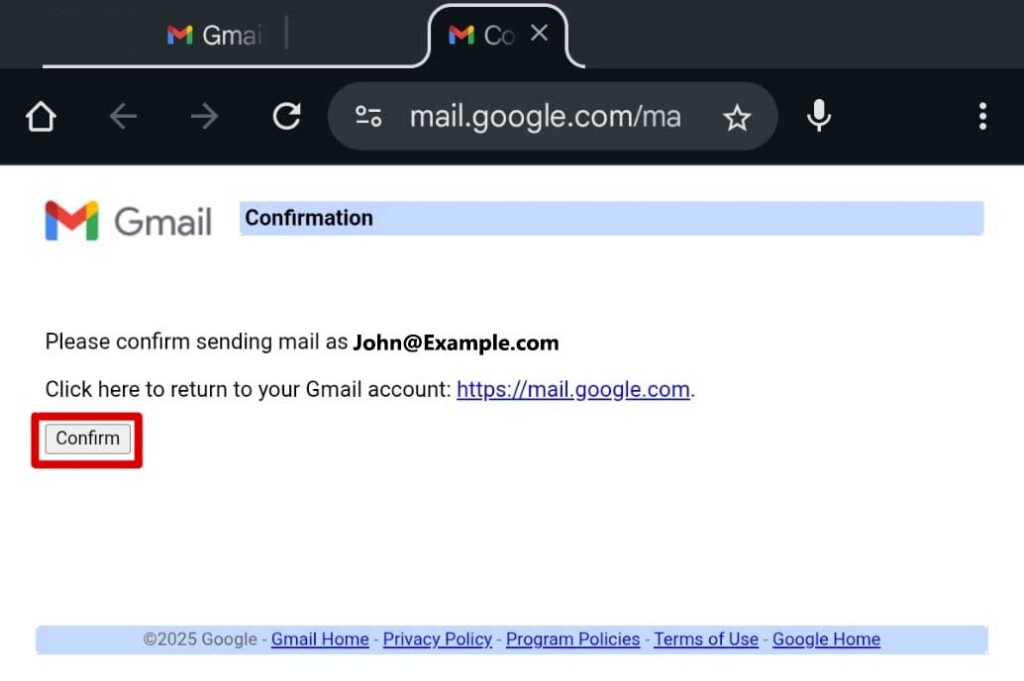 The last step of this process requires you to receive a confirmation email from Gmail and follow the link they send you to confirm that you have access to the accounts incoming emails and you want to enable the “Send Mail As” feature.